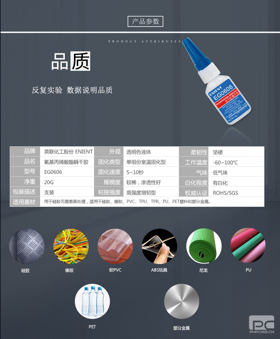 ENIENT EG0606快干膠硅膠橡膠PVC/TPU/TPR/PU/PET塑料和金屬粘接5~10秒超快干高強(qiáng)度低白化透明20G