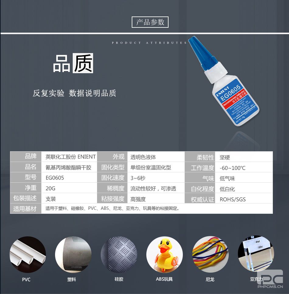 ENIENT EG0605塑料硅橡膠PVC/ABS尼龍亞克力玩具粘接3~6秒超快干固化無白化透明20G